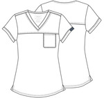 This one-pocket V-neck top is operation room friendly. It has a sleek feminine shape, and features short sleeves and a slightly curved hem, as well as side vents for ease of movement. Modern Classic fit. This style looks great tucked in or untucked. Center back length: 26"