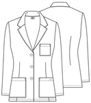 A Modern Classic fit 28" consultation lab coat features a notched lapel and a three front button closure. Also featured are one chest pocket and two lower patch pockets. Front and back darts add shape.