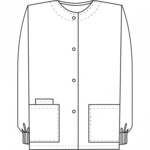 A Traditional Classic fit, round neck snap front warm-up with two patch pockets, knit cuffs, and a cell phone pocket. Center back length: 27 1/2".